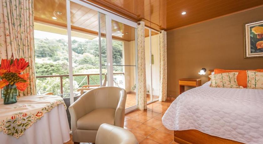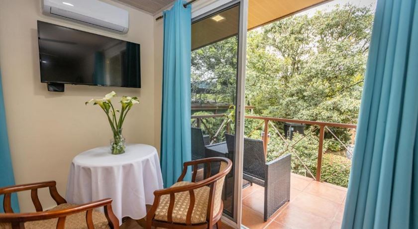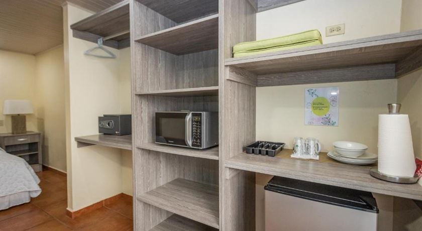 Standard king bed, air conditioning, microwave, refrigerator, closet, private balcony overlooking the gardens, private bathroom with hot water, safe and amenities